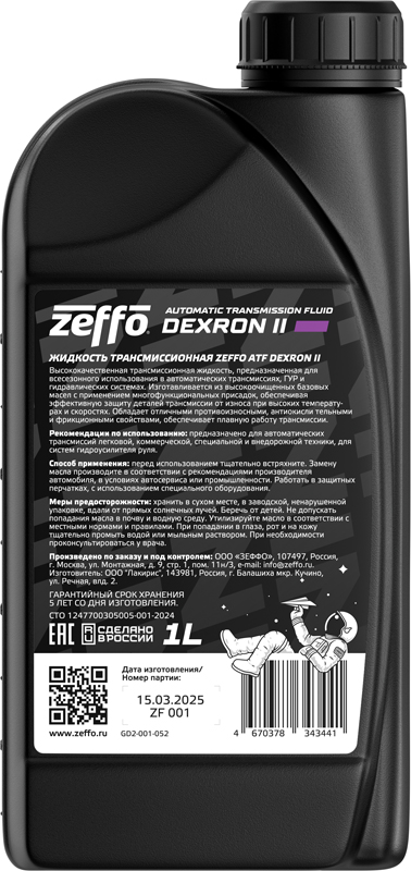Предназначена для всесезонного использования в автоматических и гидромеханических трансмиссиях. Изготавливается из высокоочищенных базовых масел с применением многофункциональных присадок, обеспечивая эффективную защиту деталей трансмиссии от износа при высоких температурах и скоростях.